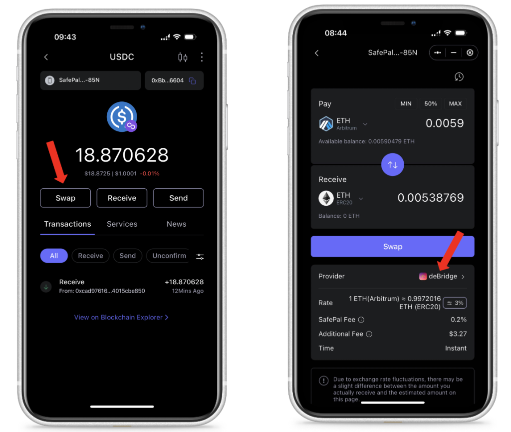 SafePal is happy to share its latest partnership with deBridge, a move that broadens the horizons for users engaging in cross-chain swaps. This integration allows SafePal users to seamlessly swap assets across various EVM (Ethereum Virtual Machine) networks, including Ethereum, BNB Chain, and Arbitrum, as well as non-EVM chains such as Solana. The partnership promises not only competitive rates and deep liquidity but also fast transaction speeds, making cross-chain transactions smoother and more efficient than ever before.